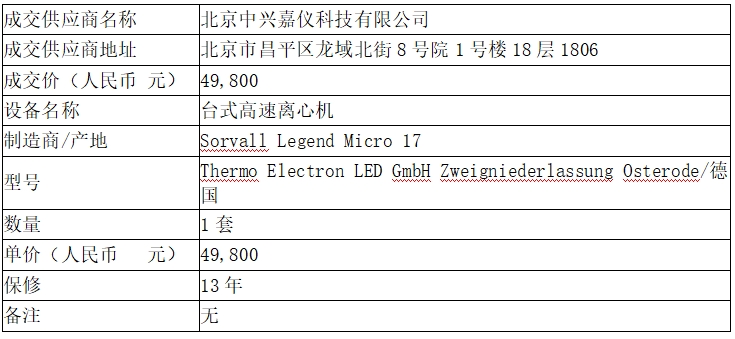 中日友好医院****年台式高速离心机采购项目成交结果公告