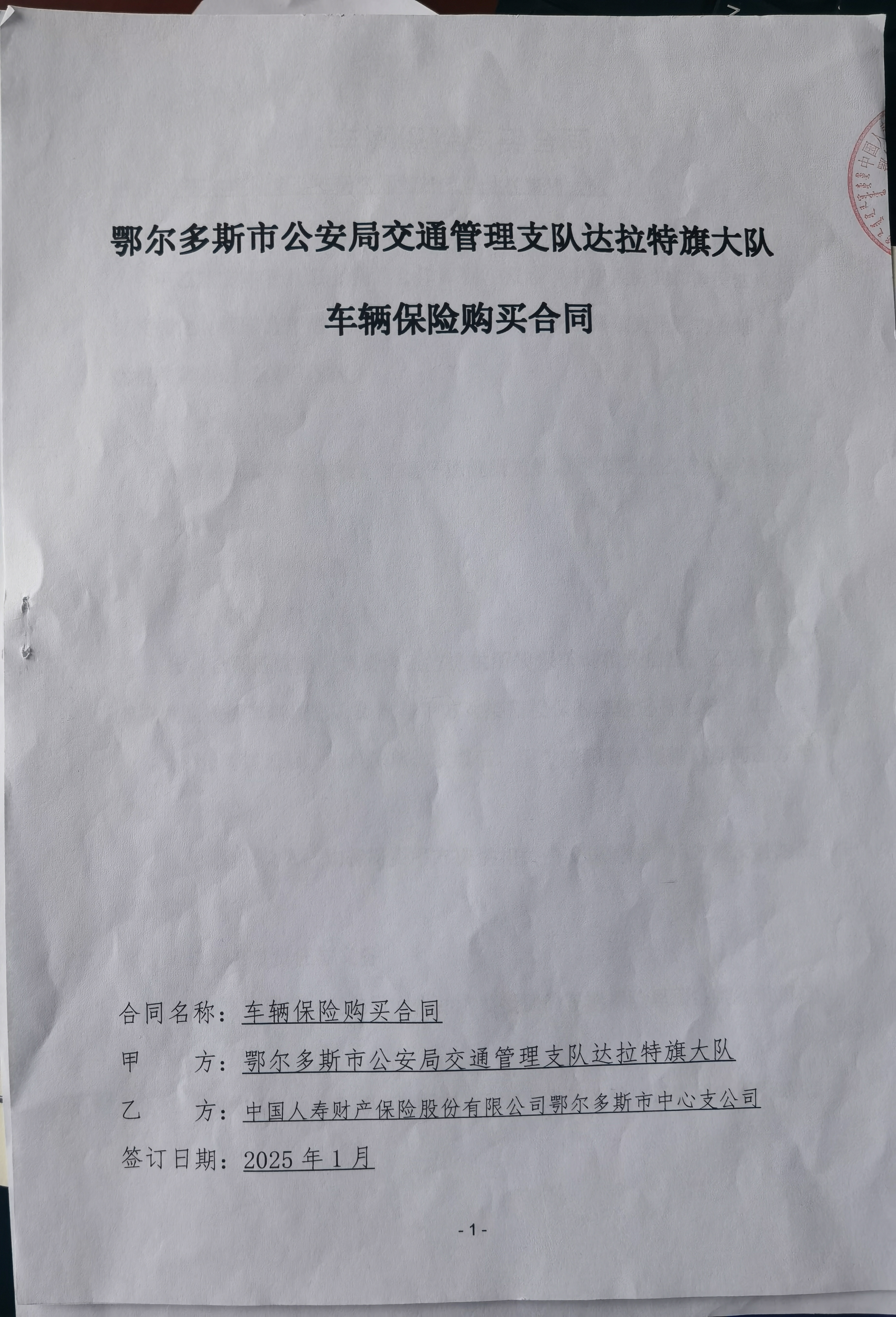 鄂尔多斯市公安局交通管理支队达拉特旗大队达旗大队公务用车保险项目合同书政府采购合同公告