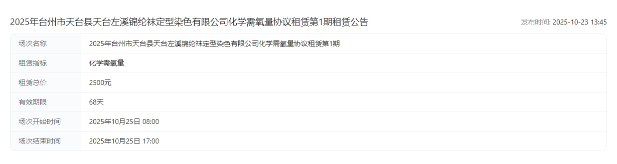 袜定型染色有限公司化学需氧量协议租赁第1期租赁公告