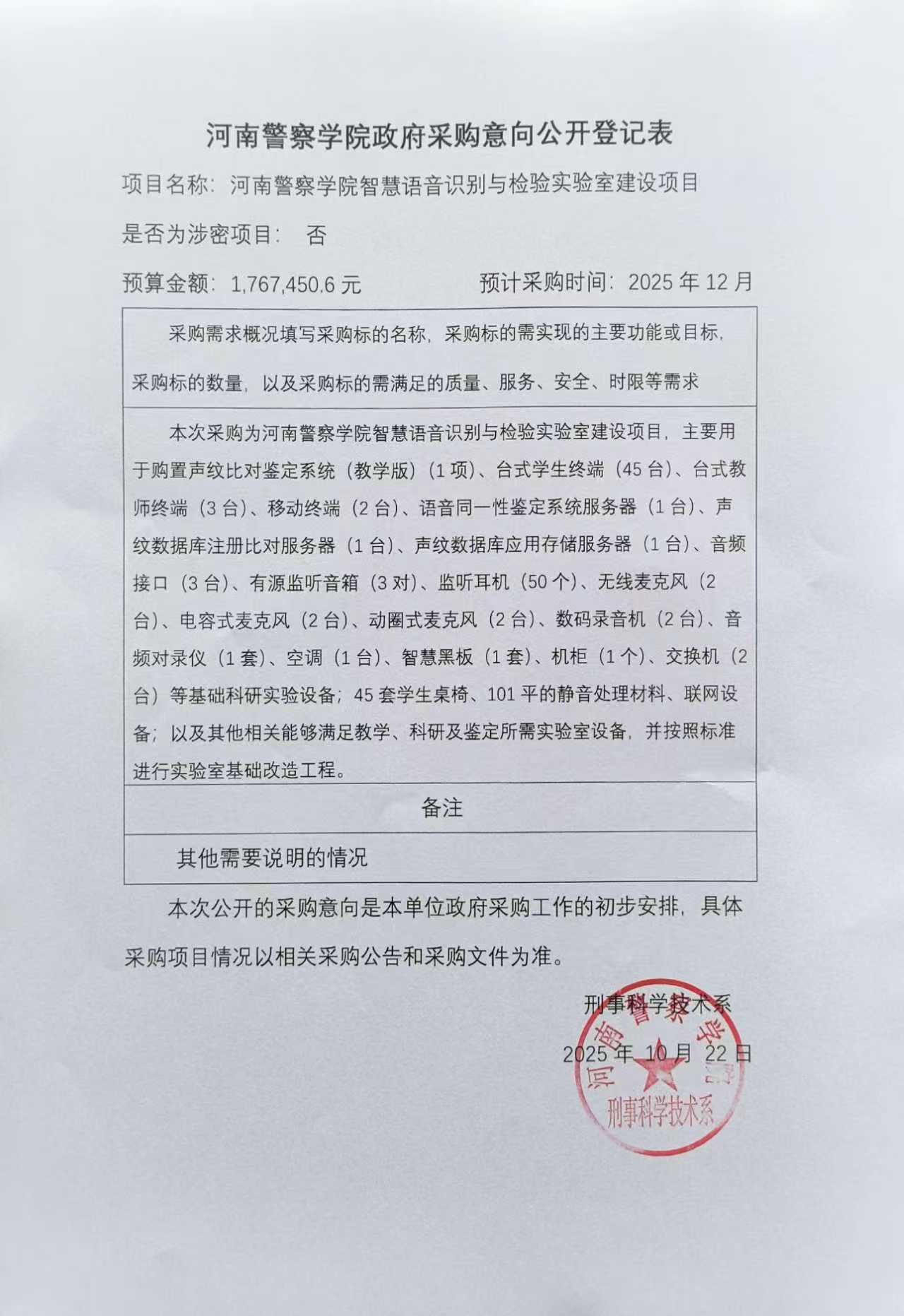 为便于供应商及时了解政府采购信息,根据《河南省财政厅关于开展政府采购意向公开工作的通知》(豫财购〔****〕*号)等有关规定,现将河南警察学院 ****年**(至)**月采购意向公开如下: |