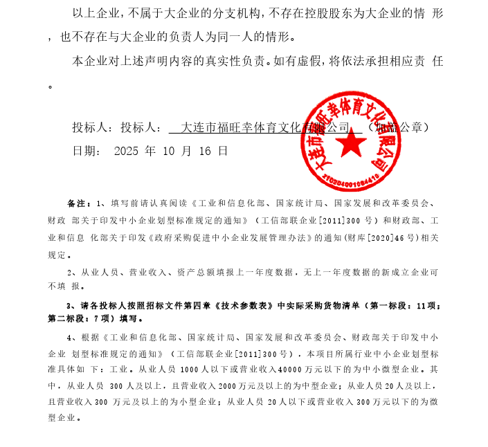 第二标段:大连市福旺幸体育文化有限公司 评审总得分:***.*;评审平均分:**.**;最终得分:**.**