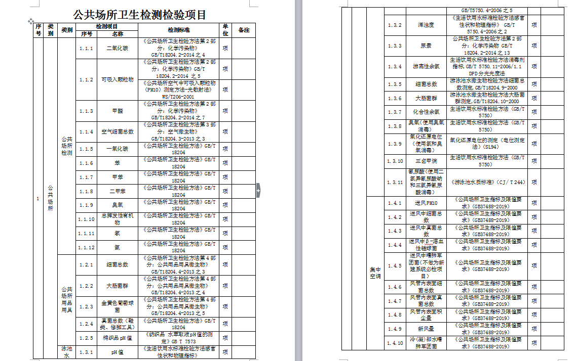 根据申请人要求,开展公共场所卫生检测(对公共场所的空气、微小气候、水质、采光、照明、噪声、顾客用品用具等进行卫生检测)工作。主要包括:一是**个房间以上的住宿场所卫生检测,二是游泳场所水质检测,三是安装集中式空调通风系统公共场所的集中式空调卫生检测。