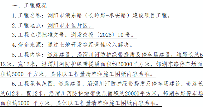 浏阳市水利建设投资有限公司浏阳市湖东路(长岭路*泰安路)建设项目合同公告