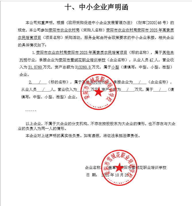 荥阳市农业农村局荥阳市2025年高素质农民培育项目-成交公告