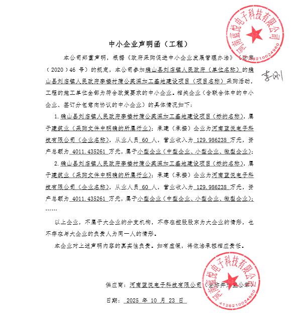 确山县刘店镇人民政府李楼村蒲公英深加工基地建设项目*成交公告