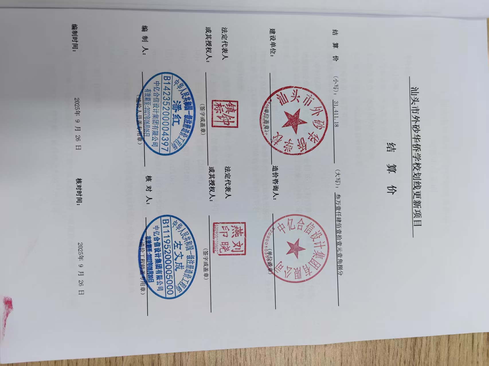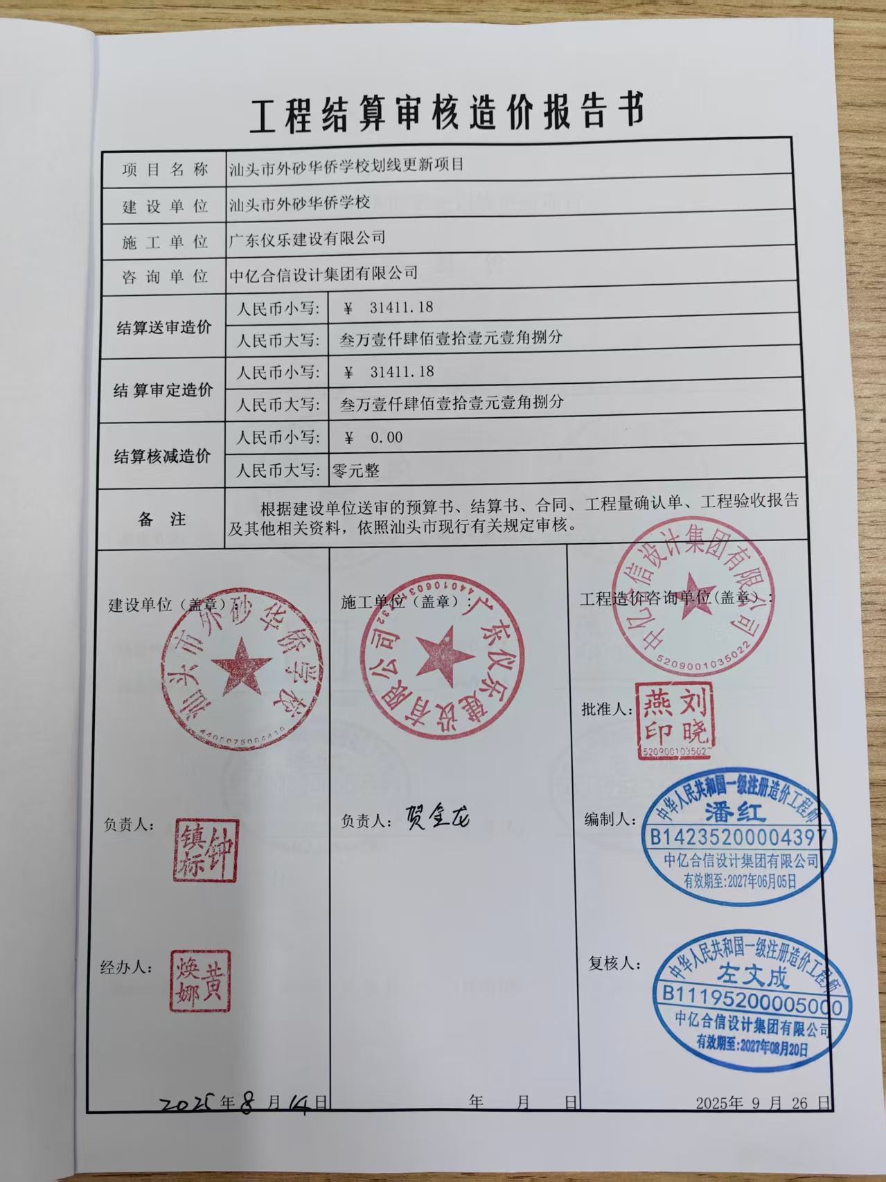 汕头市外砂华侨学校采购汕头市外砂华侨学校划线更新项目的结算审核服务