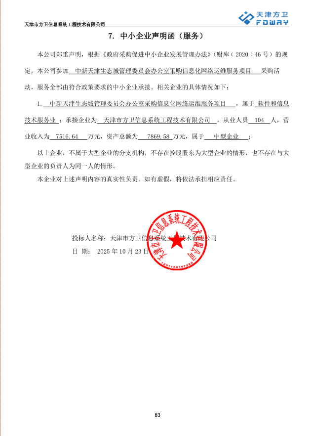 中新天津生态城管理委员会办公室采购信息化网络运维服务项目(项目编号:...