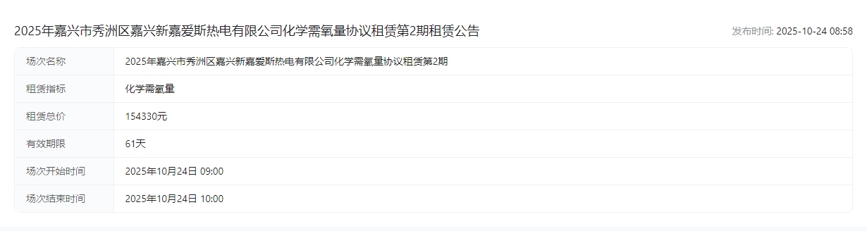 热电有限公司化学需氧量协议租赁第2期租赁公告
