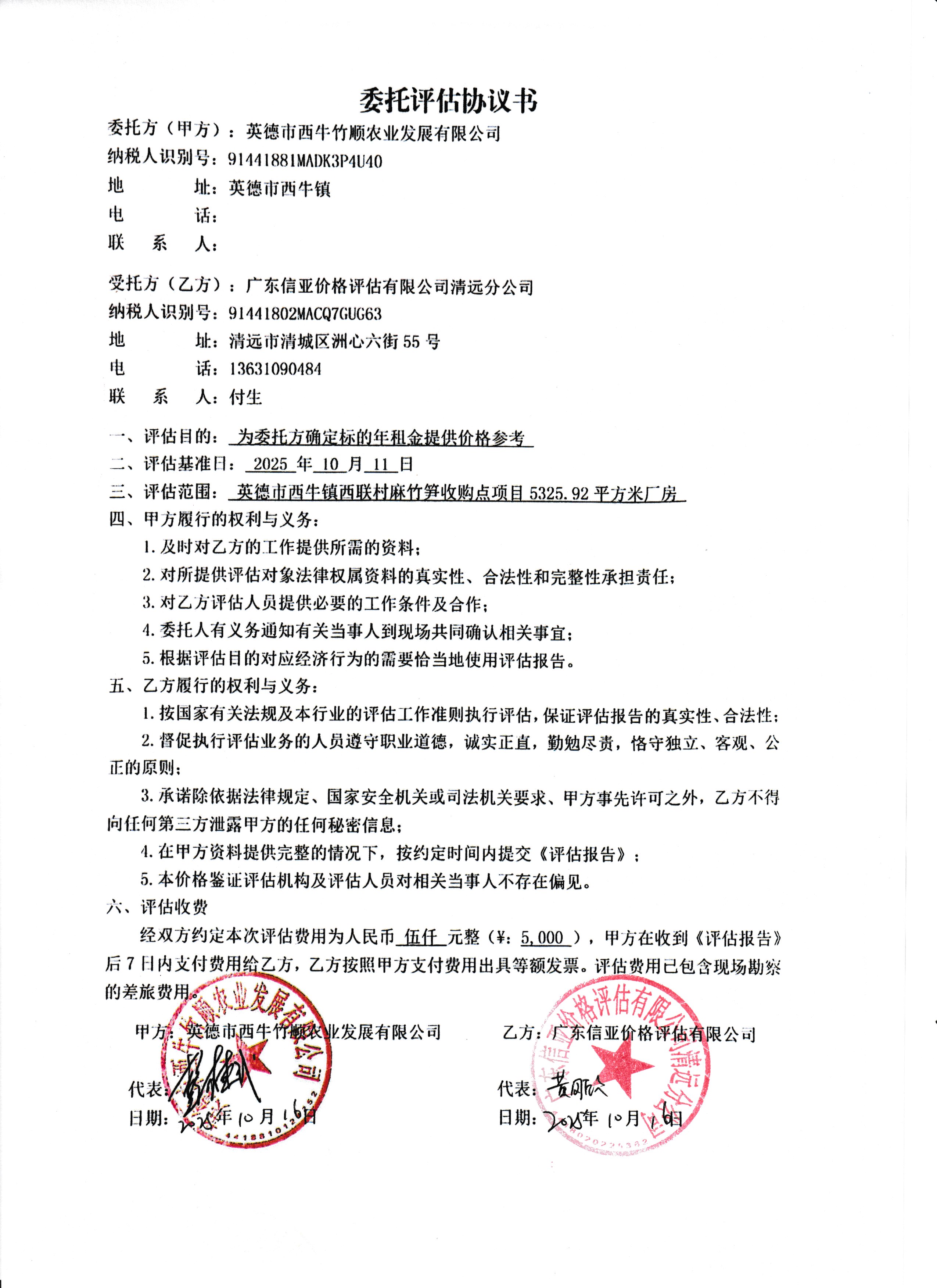 英德市西牛镇西联村麻竹笋收购点项目厂房出租评估合同公开