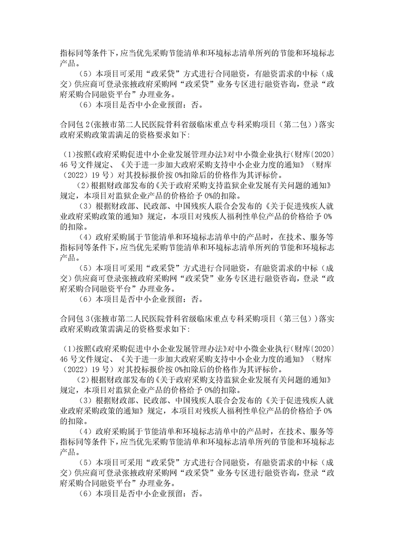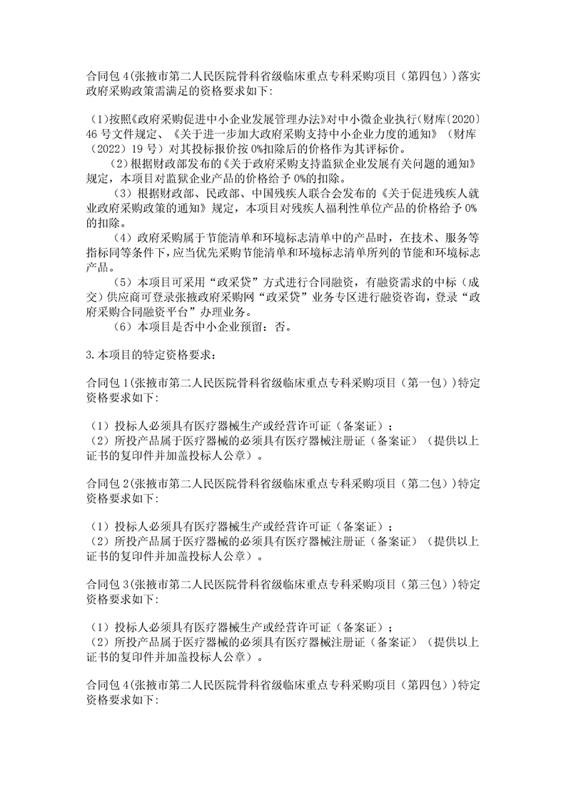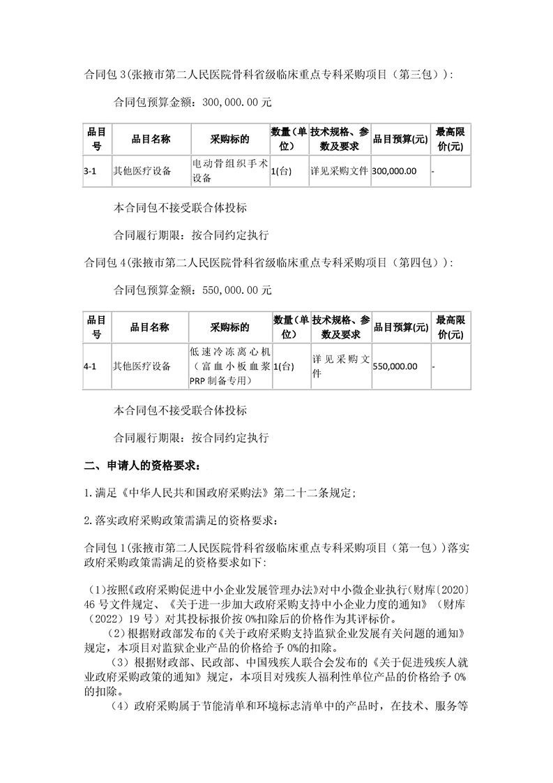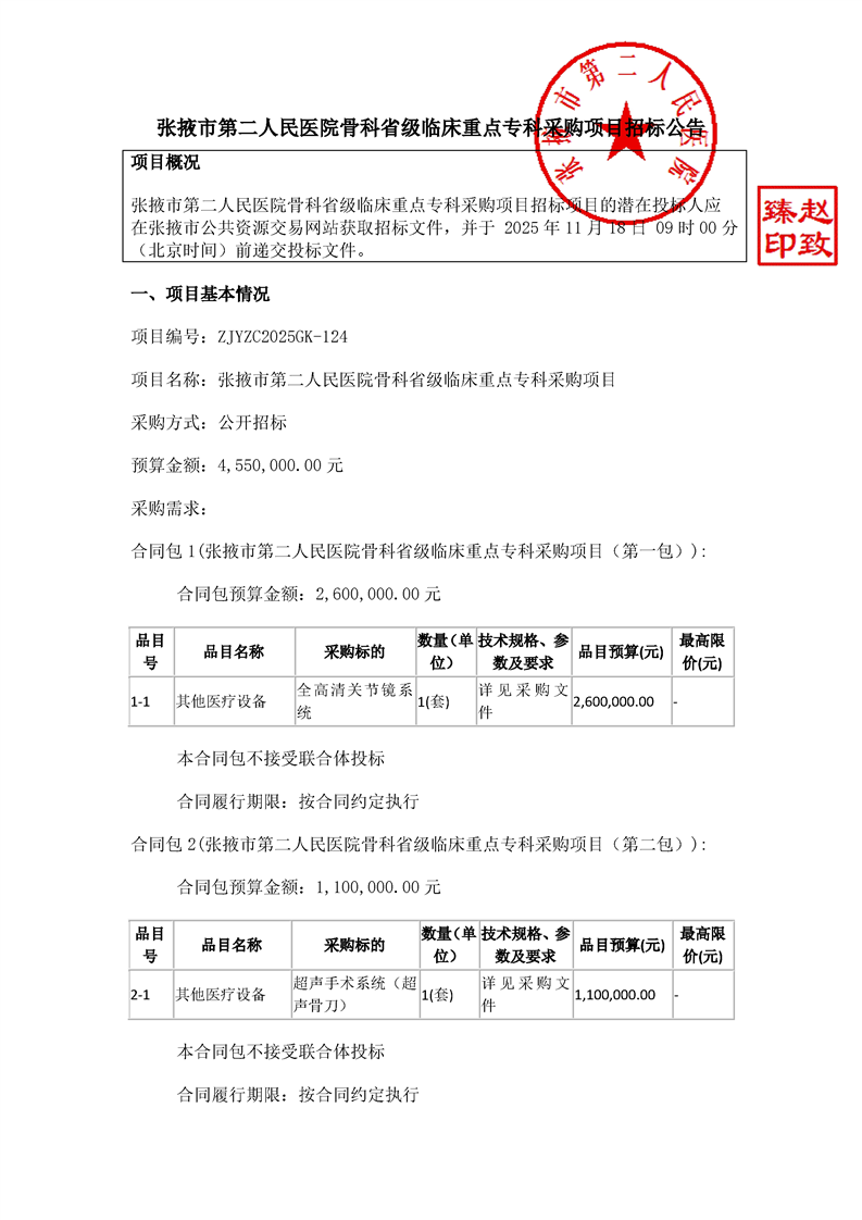 张掖市第二人民医院骨科省级临床重点专科采购项目招标公告