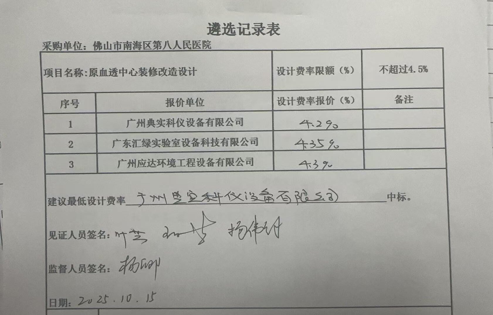 经过内部遴选和会议讨论,该公司符合设计要求,经验丰富,熟悉流程,最低价中选。