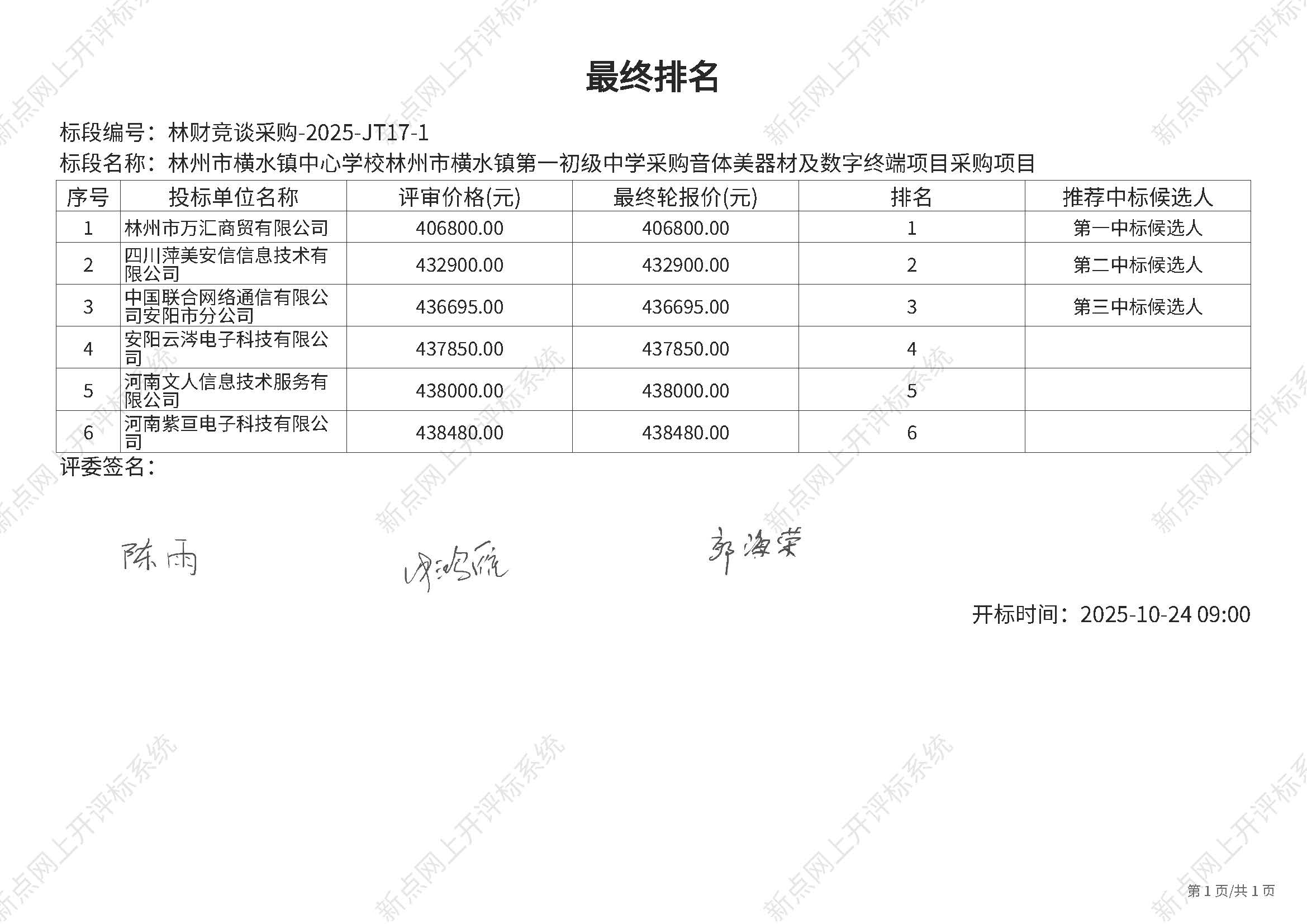 林州市横水镇中心学校林州市横水镇第一初级中学采购音体美器材及数字终端项目成交公告