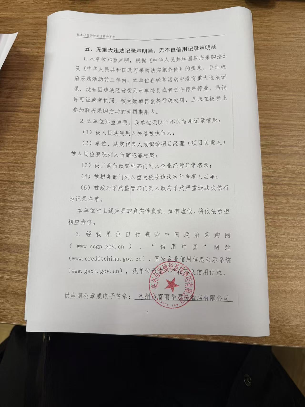 供应商名称:亳州市富丽华君悦酒店有限公司