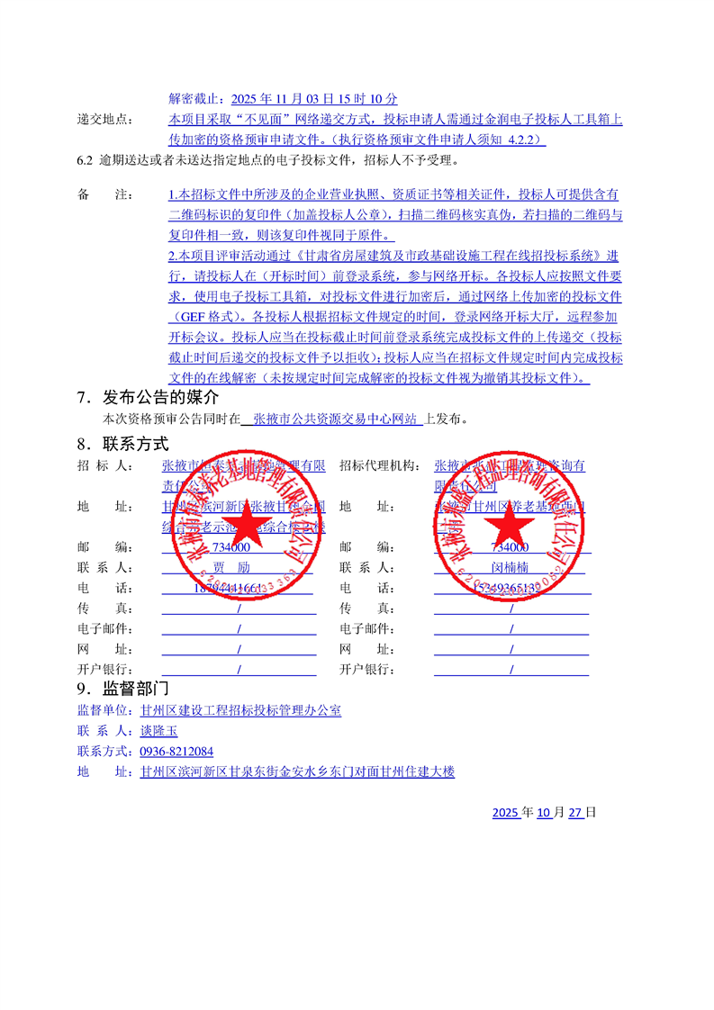 甘肃/张掖 招标采购