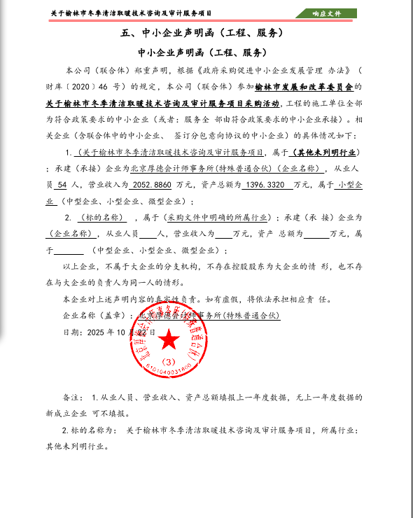 合同包*(标段编号:***************** 标段名称:榆林市冬季清洁取暖审计服务):