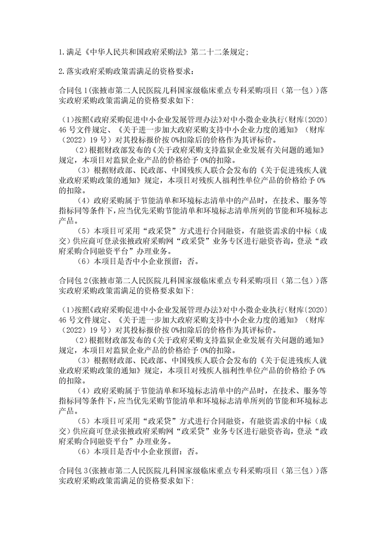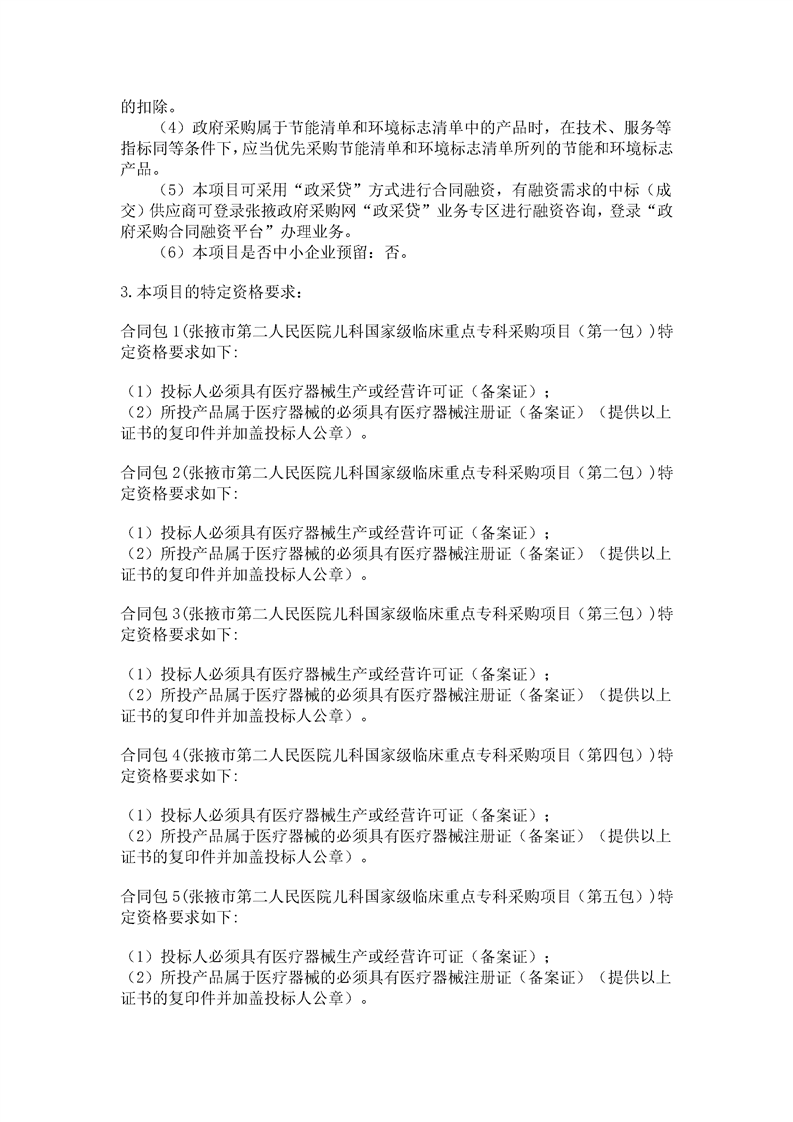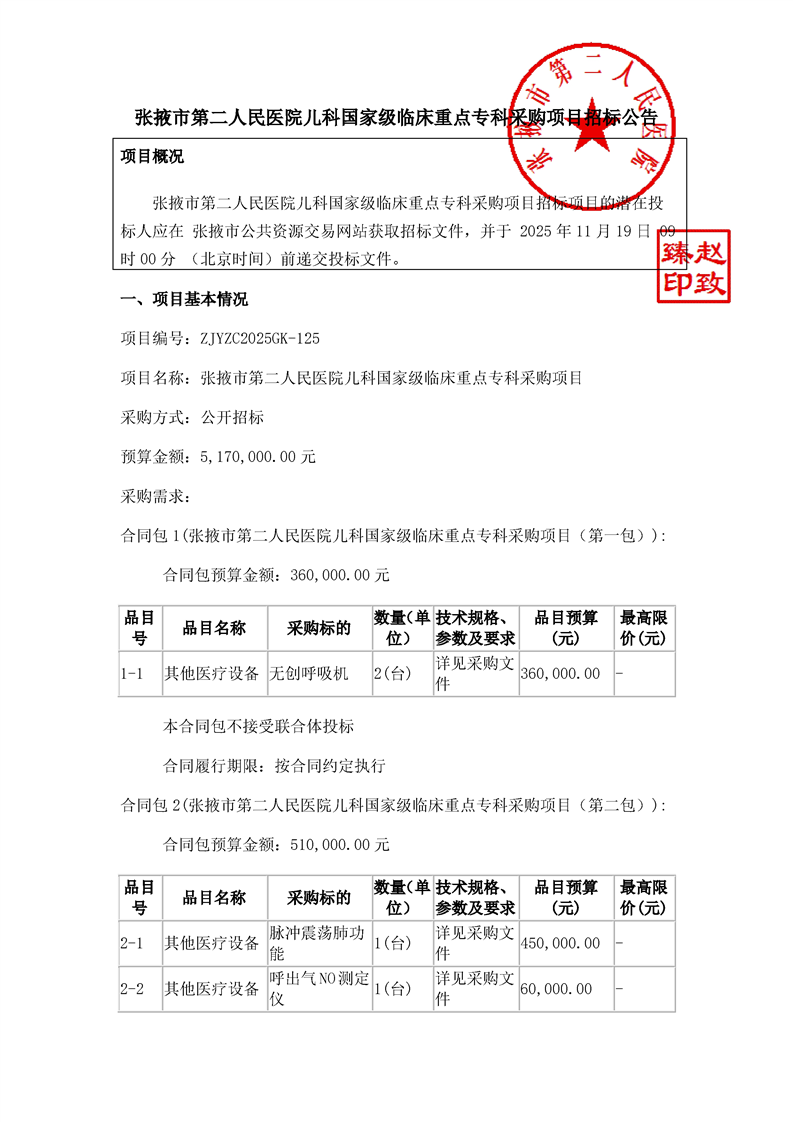张掖市第二人民医院儿科国家级临床重点专科采购项目招标公告
