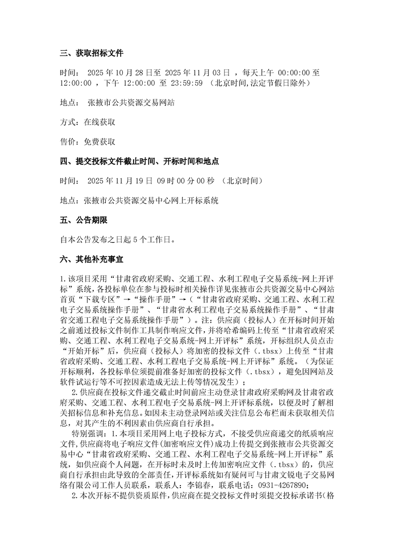 甘肃/张掖 招标采购