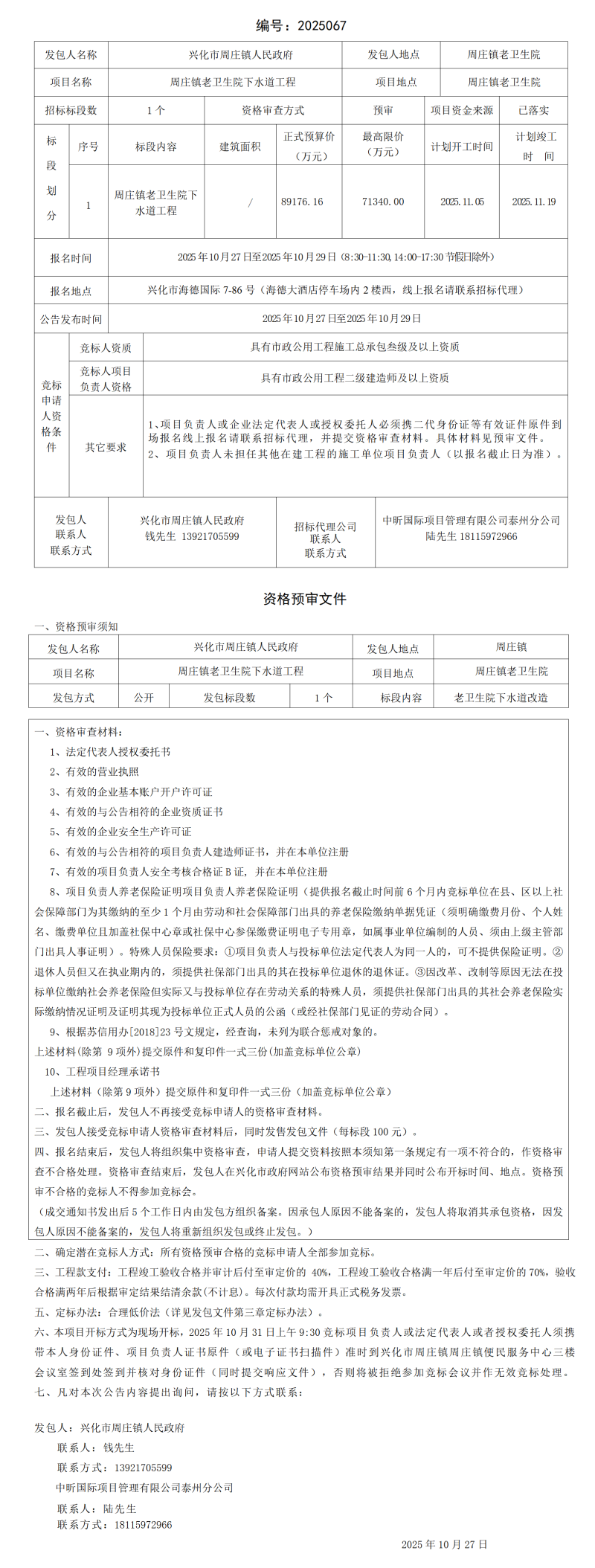 镇老卫生院下水道工程发包公告