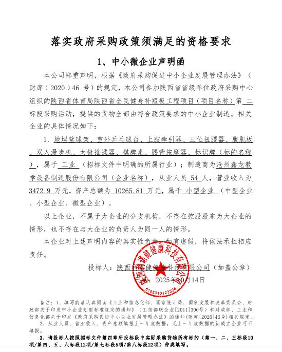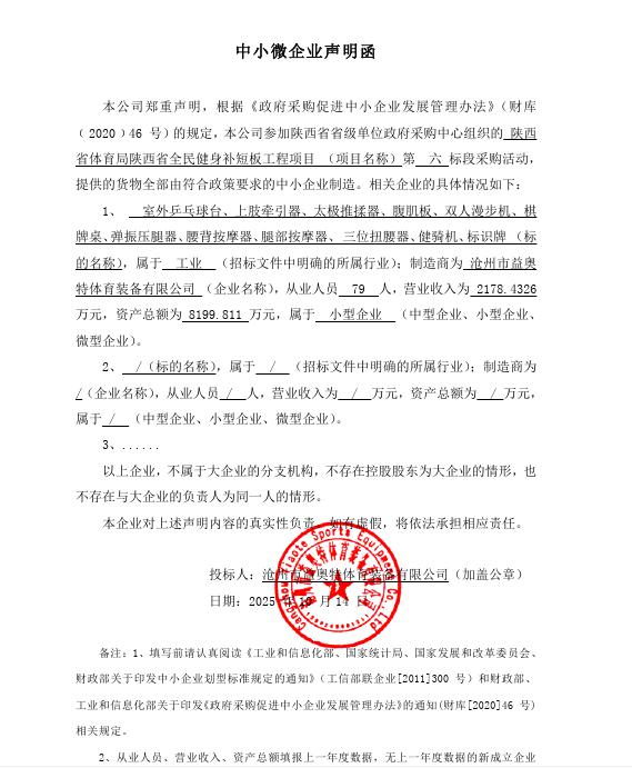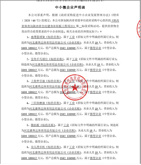 陕西省体育局机关陕西省全民健身补短板工程项目中标(成交)结果公告