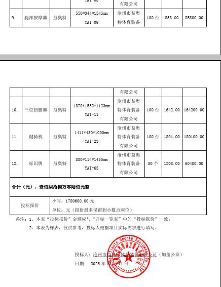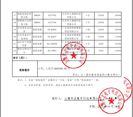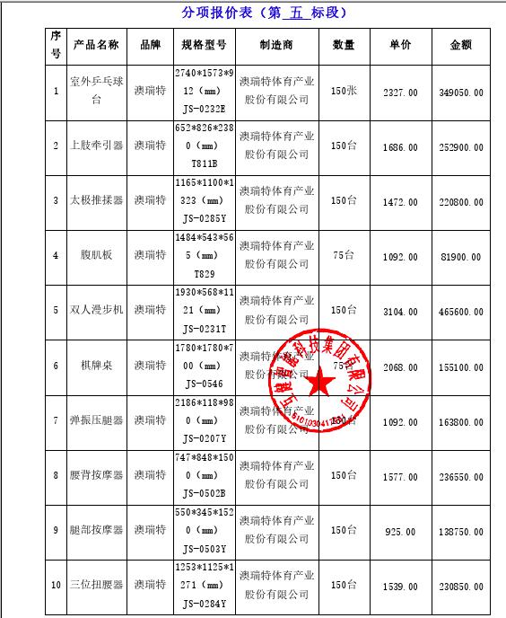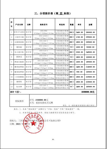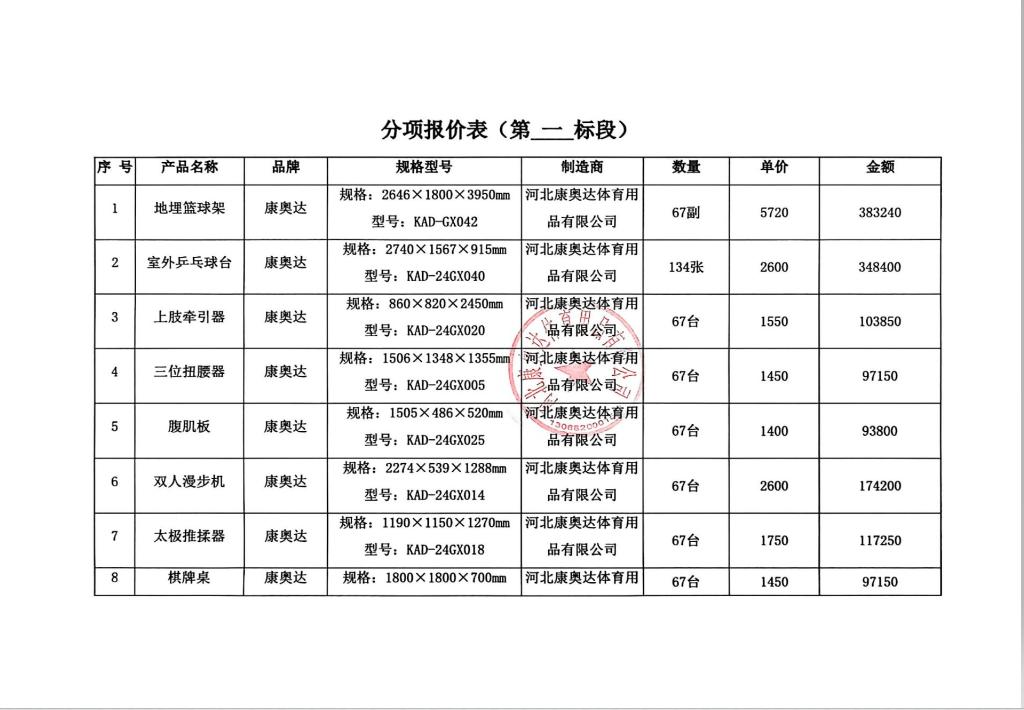| * | 其他体育设备设施 | 社区运动健康中心 | 详见分项报价表 | 详见分项报价表 | *.**(批) | *,***,***.** | *,***,***.** |