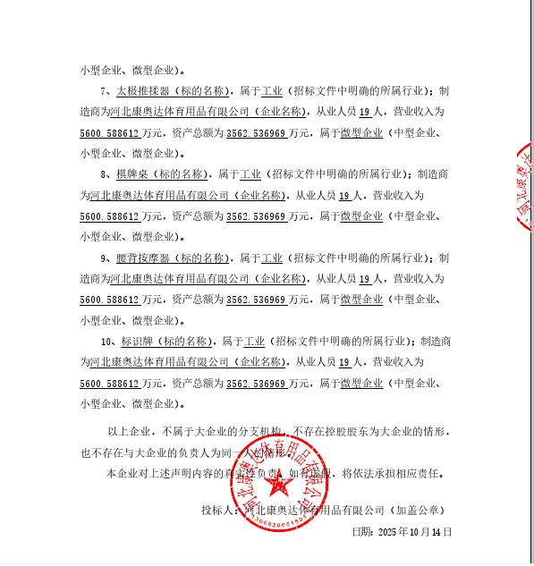 根据财办库〔****〕***号《关于进一步提高政府采购透明度和采购效率相关事项的通知》公示如下:河北康奥达体育用品有限公司评审总得分:***.**分;评审平均分:**.**分;最终得分:**.**分。(一包)