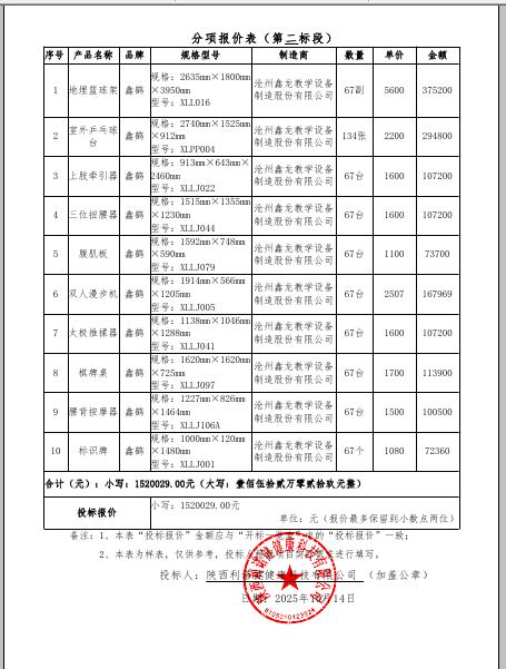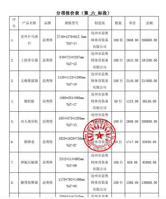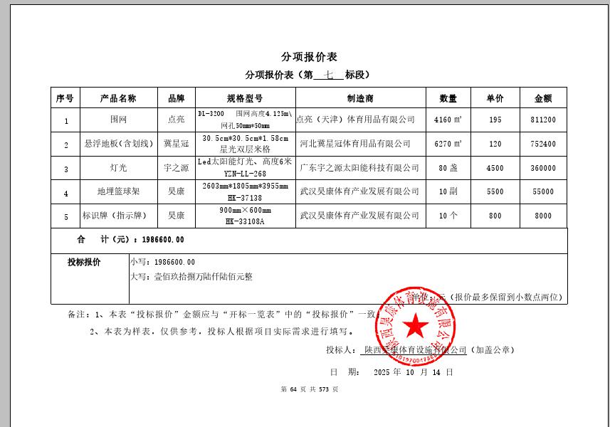 | * | 其他体育设备设施 | 行政村工程(陕北) | 详见分项报价表 | 详见分项报价表 | *.**(批) | *,***,***.** | *,***,***.** |