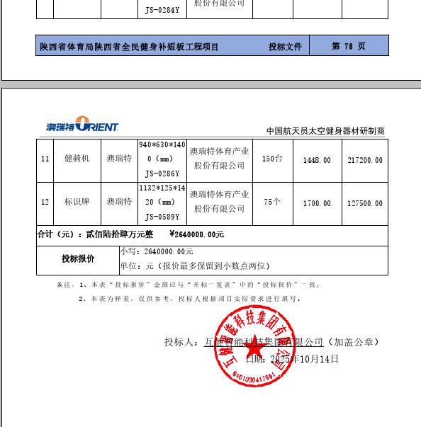 | * | 其他体育设备设施 | 社区工程(陕南) | 详见分项报价表 | 详见分项报价表 | *.**(批) | *,***,***.** | *,***,***.** |