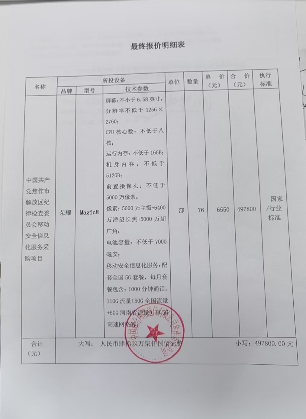 | *、采购项目名称:中国共产党焦作市解放区纪律检查委员会移动安全信息化服务采购项目 | |||||||||||||||||||||||||||||||