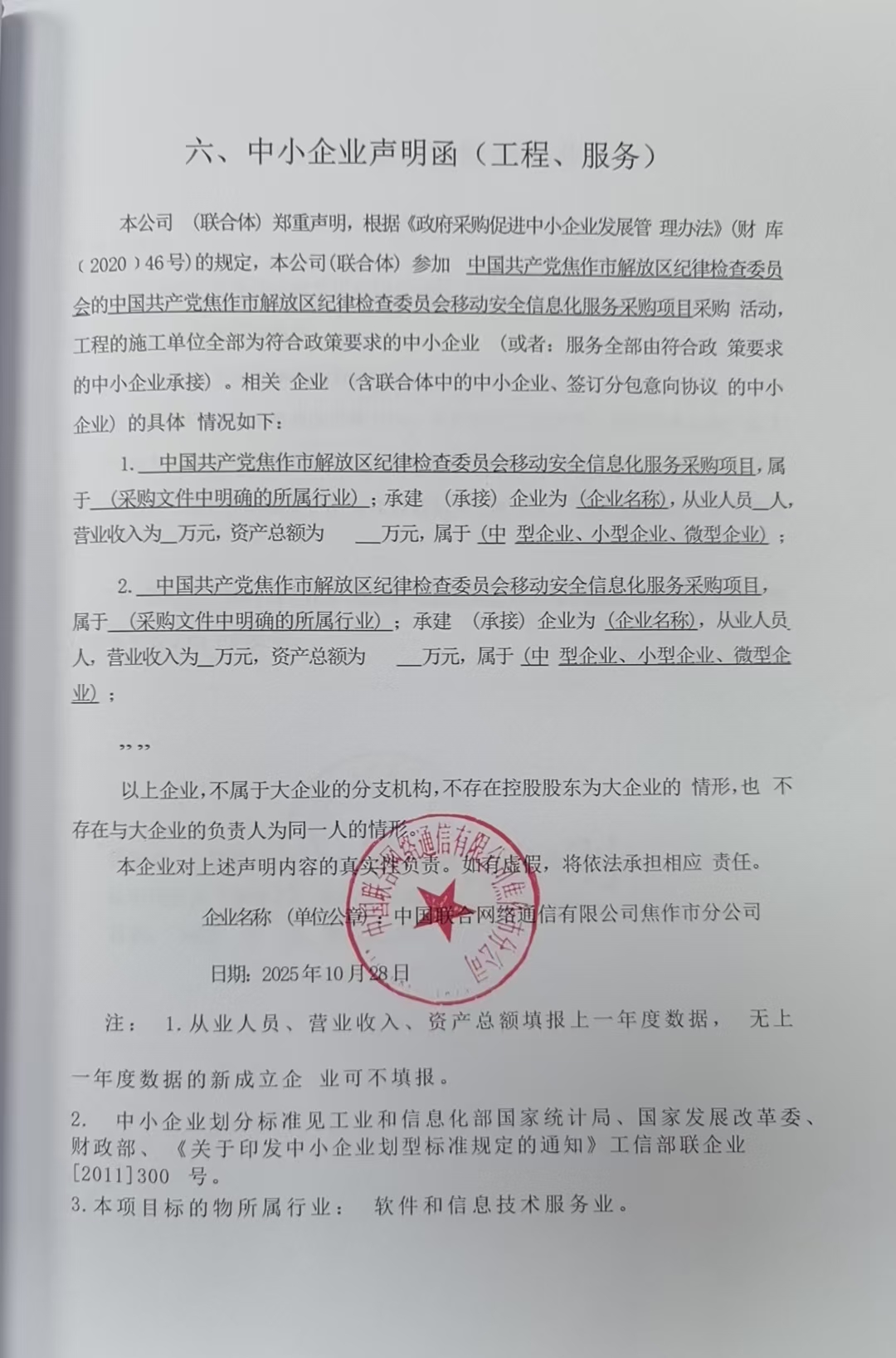 | *、采购项目名称:中国共产党焦作市解放区纪律检查委员会移动安全信息化服务采购项目 | |||||||||||||||||||||||||||||||