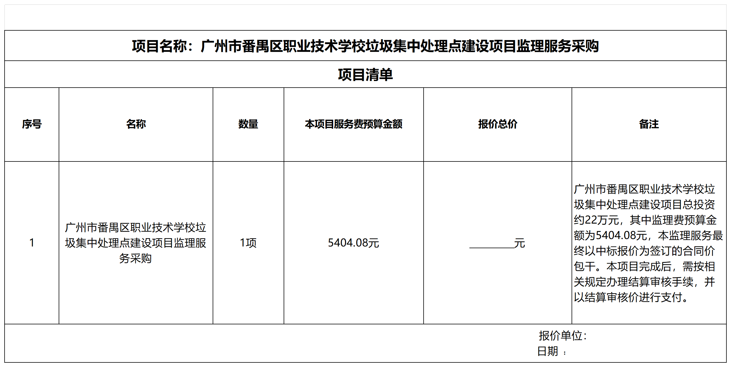 广州市番禺区职业技术学校垃圾集中处理点建设项目监理服务采购
