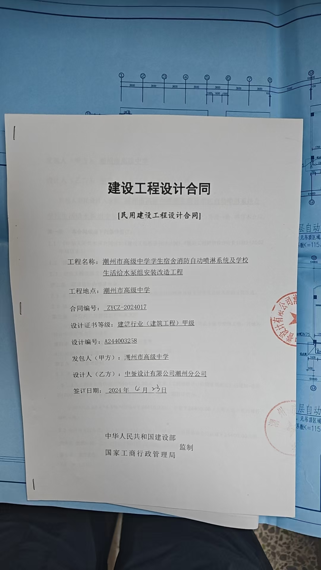 潮州市高级中学学生宿舍消防自动喷淋系统及学校生活给水泵组安装改造工程--工程设计合同公开