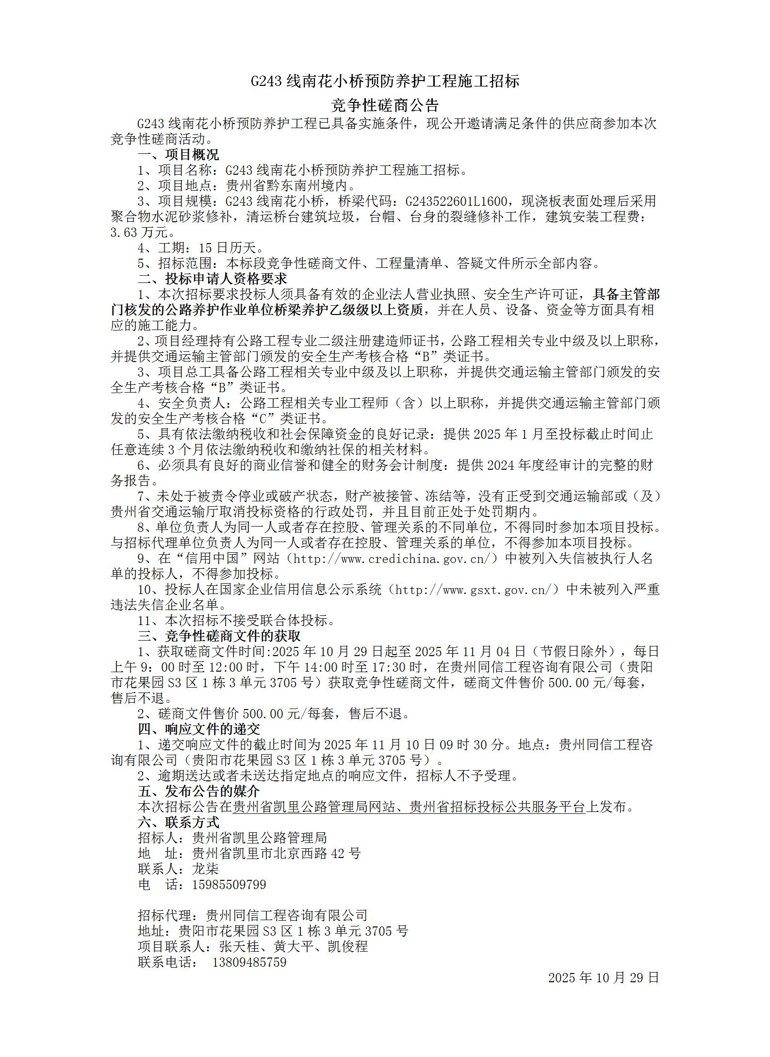 G243线南花小桥预防养护工程施工招标竞争性磋商公告
