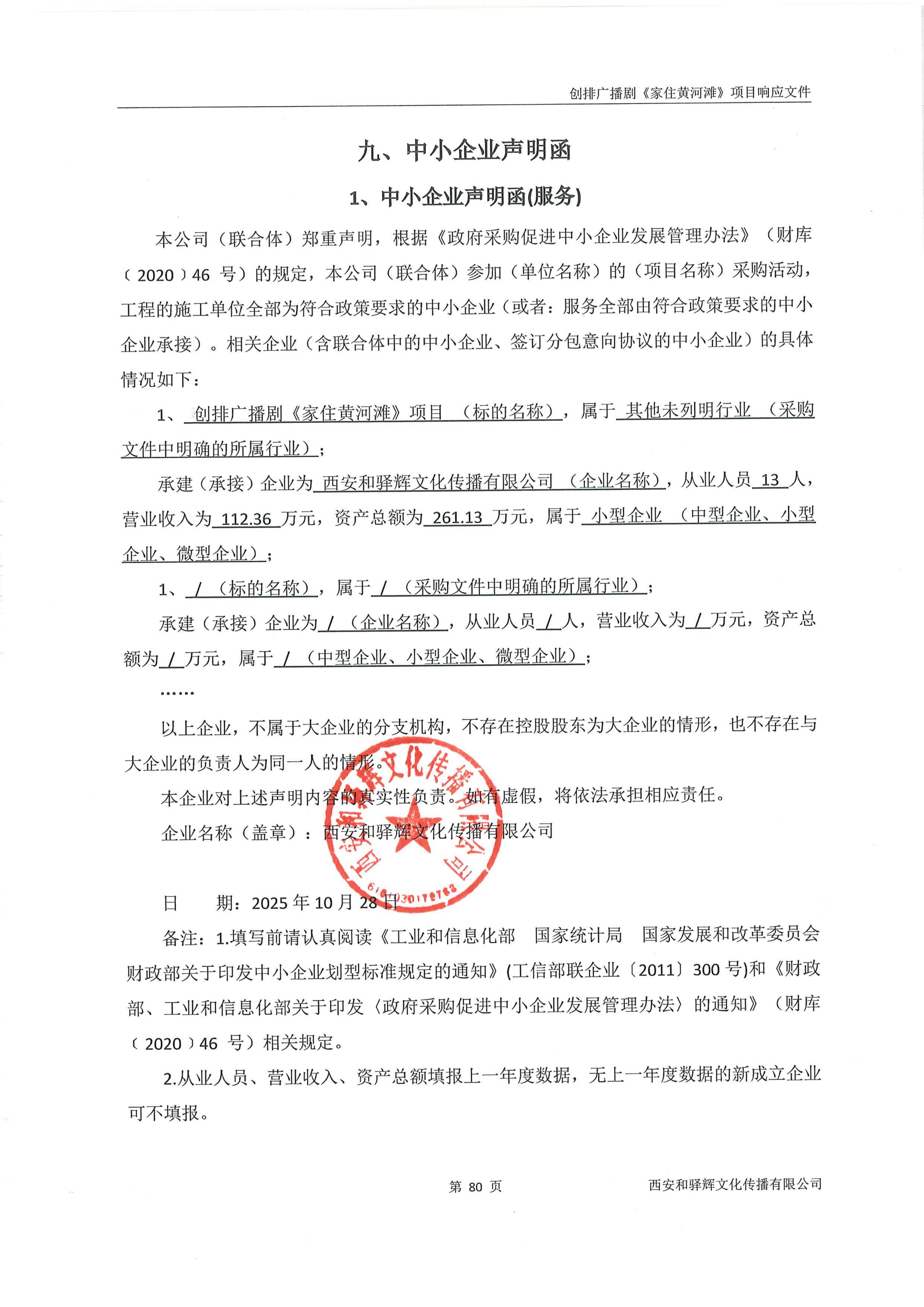 | * | 艺术创作、表演和交流服务 | 创排广播剧《家住黄河滩》项目 | 制作五集广播剧《家住黄河滩》,内容涵盖新时代文明实践、环境治理、民主协商、产业振兴、移风易俗等综合举措,实现由内而外的蜕变,最终成功创建全国文明村的历程,诠释了新时代乡村的“和美” | 广播剧《家住黄河滩》以渭南市大荔县东城街道畅家村为原型,讲述了关中黄河流域的畅村,在全国人大代表、村党支部书记马红力带领下,通过新时代文明实践、环境治理、民主协商、产业振兴、移风易俗等综合举措,实现由内而外的蜕变,最终成功创建全国文明村的历程,诠释了新时代乡村的“和美”内涵 | ****年*月**日前完成 | 符合国家标准、行业标准以及有关技术规范要求 | ***,***.** |