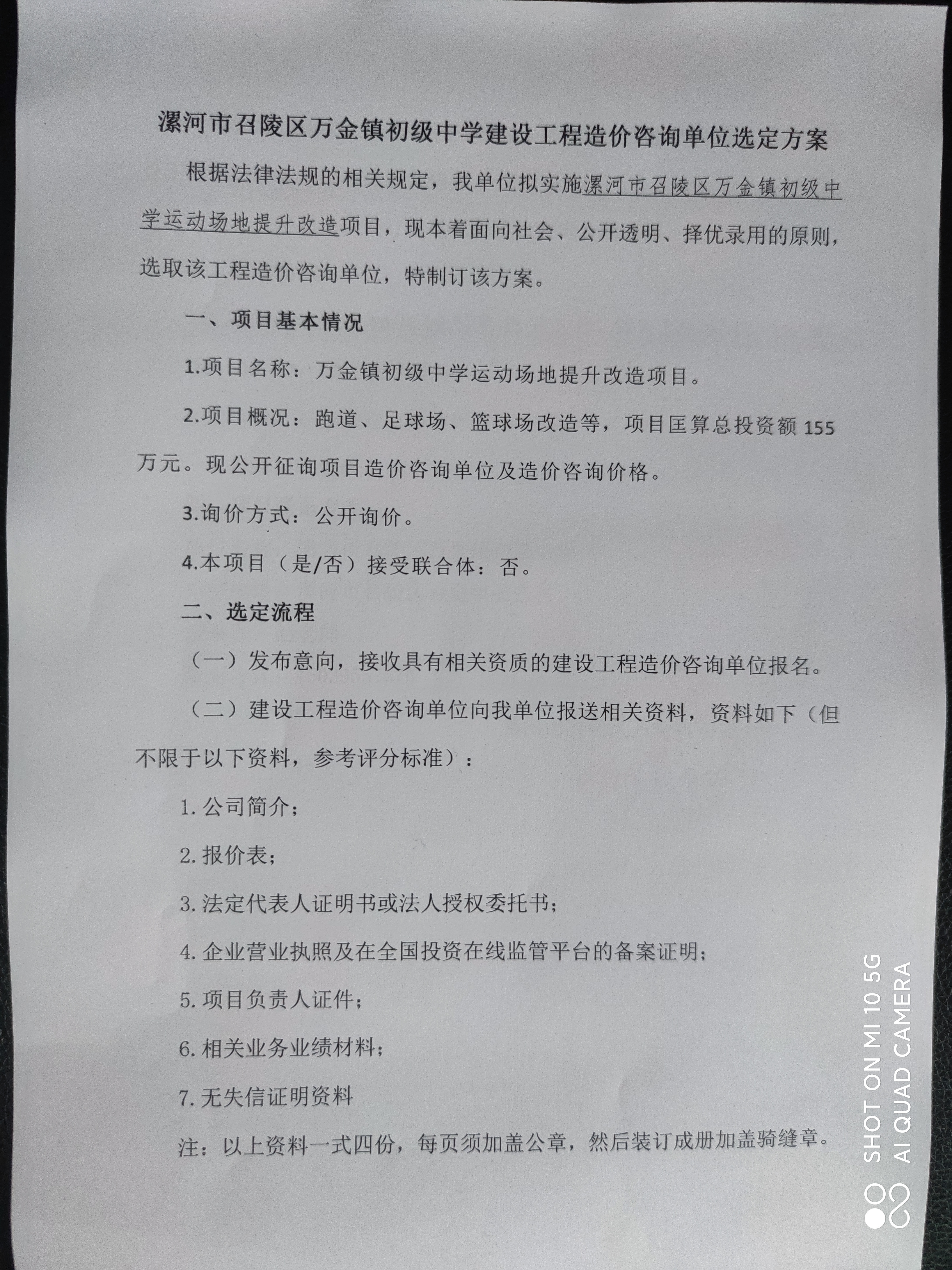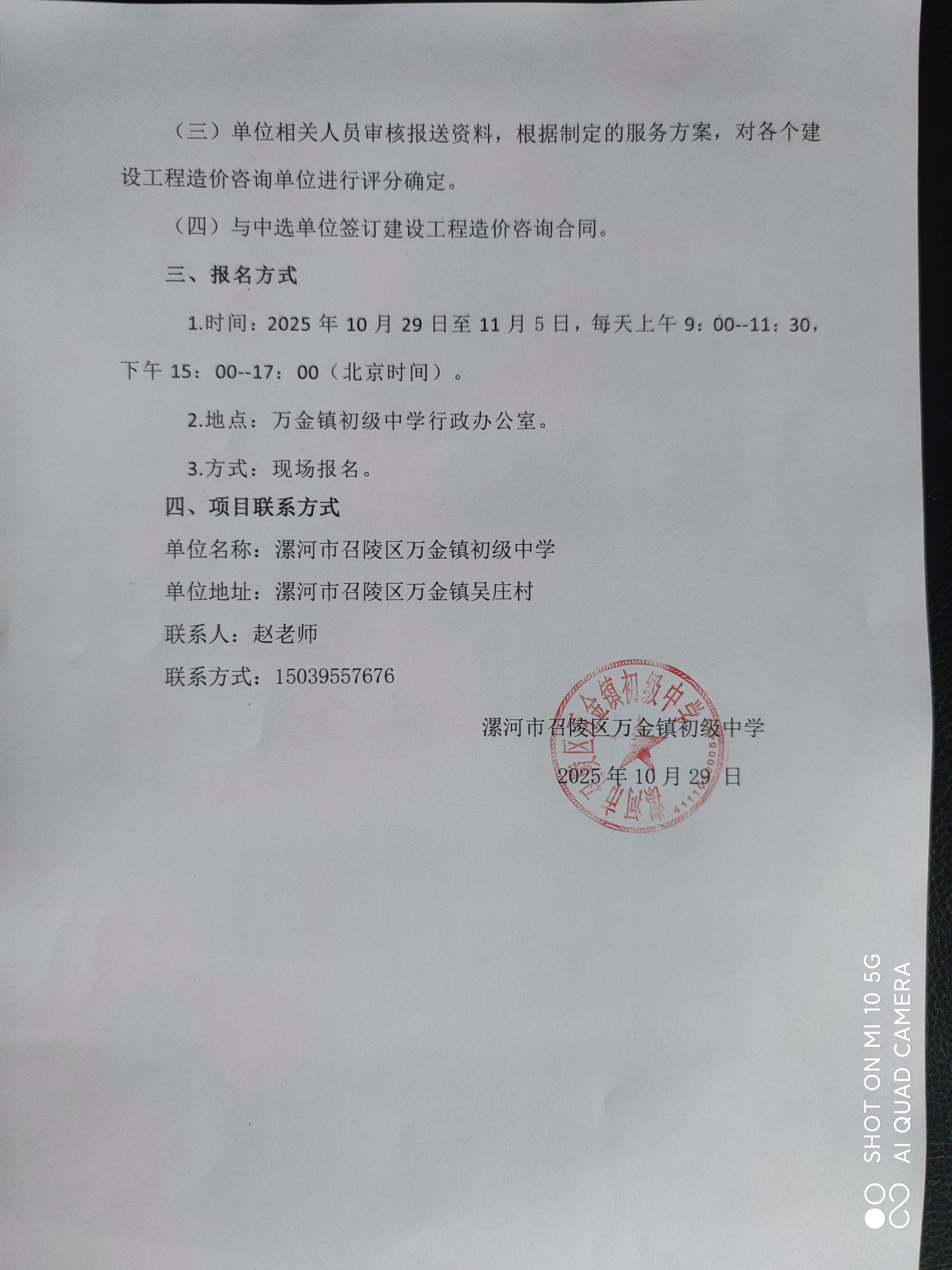 漯河市召陵区万金镇初级中学2025年10至11月政府采购意向