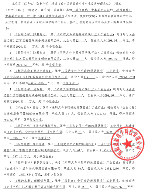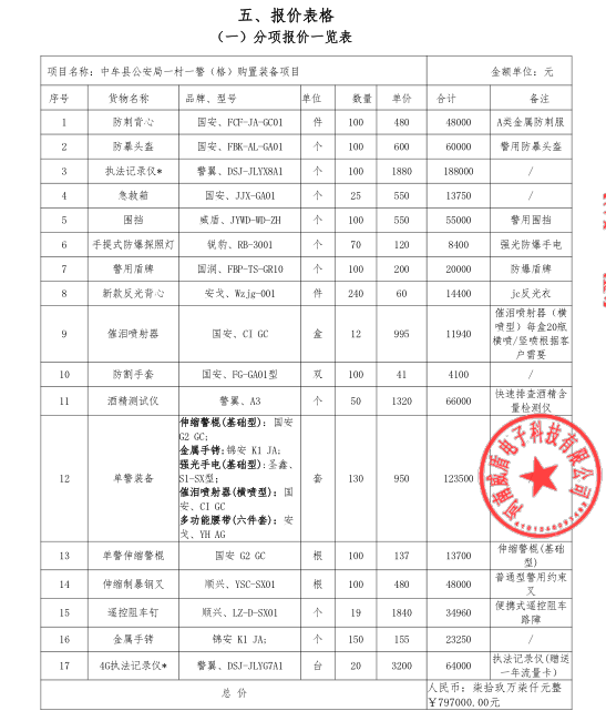 | *、采购项目名称:中牟县公安局一村一警(格)购置装备项目 | |||||||||||||||||||||||||||||||