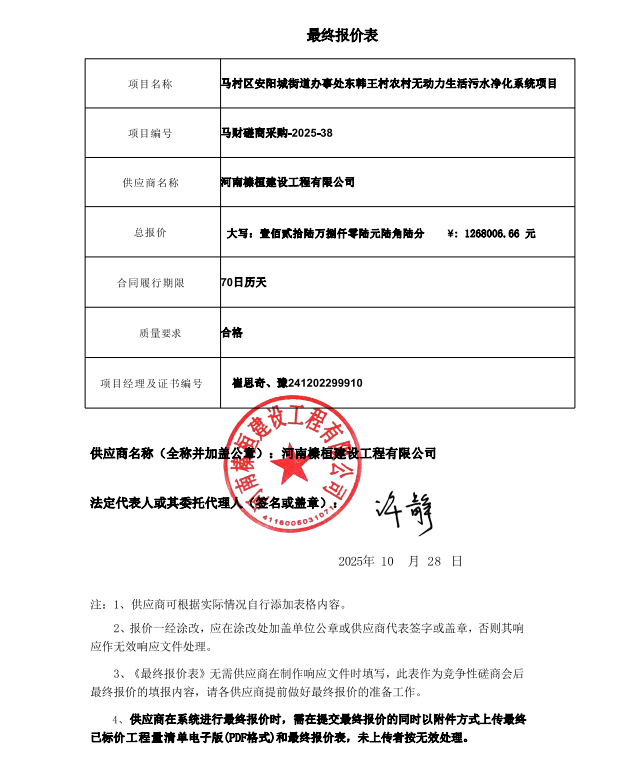 焦作市马村区安阳城街道东韩王村农村无动力生活污水净化系统项目*成交公告