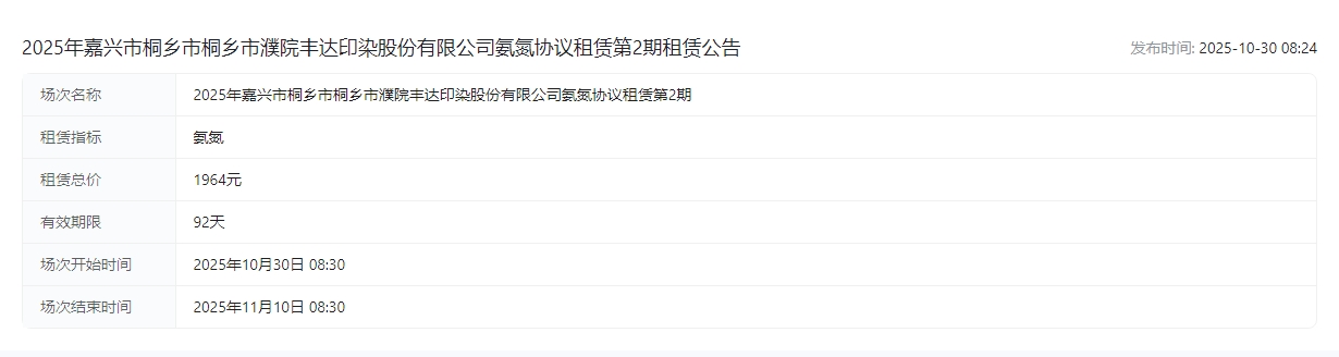 丰达印染股份有限公司氨氮协议租赁第2期租赁公告