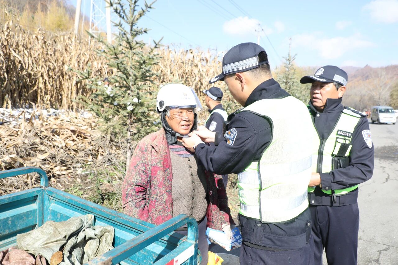 金秋护农“警”色暖! 长白交警免费赠盔 用“小头盔”守护“大平安”