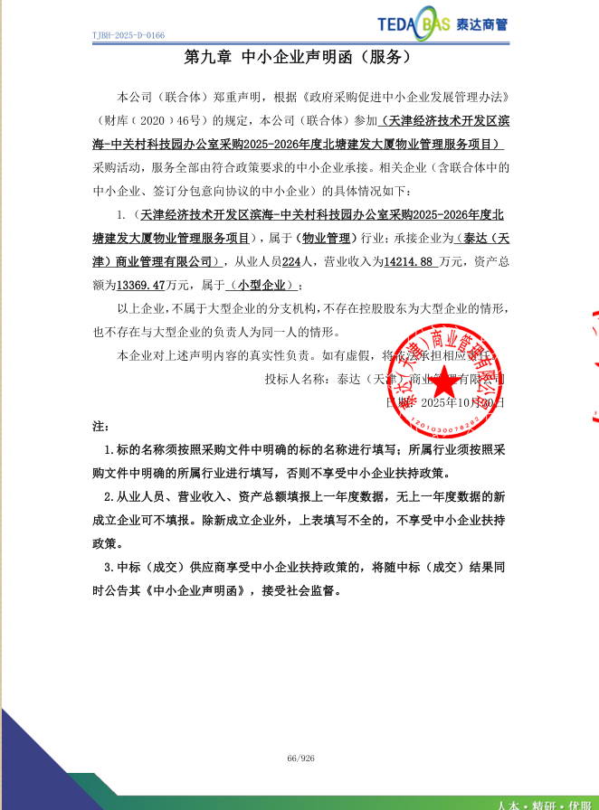 *.项目名称:天津经济技术开发区滨海*中关村科技园办公室采购*********年度北塘建发大厦物业管理服务项目