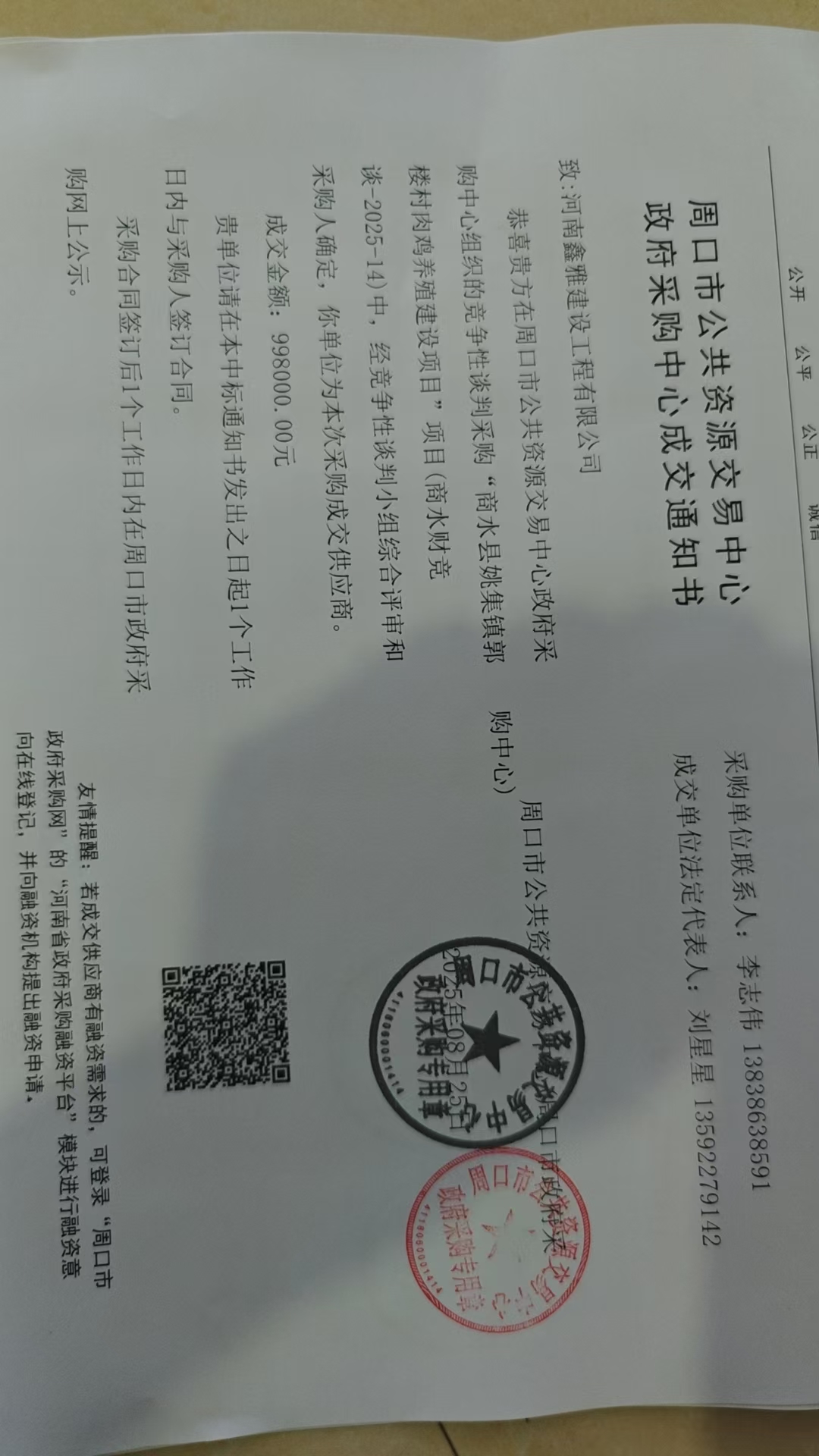 | 二、合同名称:商水县姚集镇人民政府商水县姚集镇郭楼村肉鸡养殖建设项目 | ||||||||||||