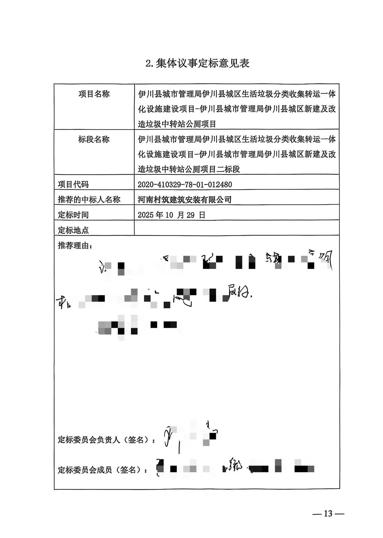 伊川县城市管理局伊川县城区生活垃圾分类收集转运一体化设施建设项目*伊川县城市管理局伊川县城区新建及改造垃圾中转站公厕项目二标段中标结果公示