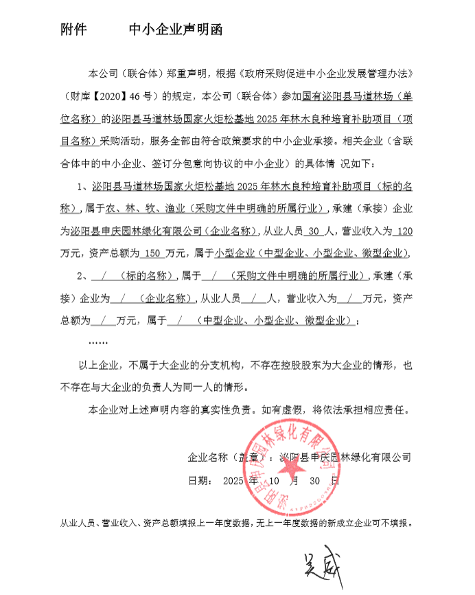 国有泌阳县马道林场泌阳县马道林场国家火炬松基地2025年林木良种培育补助项目-成交公告