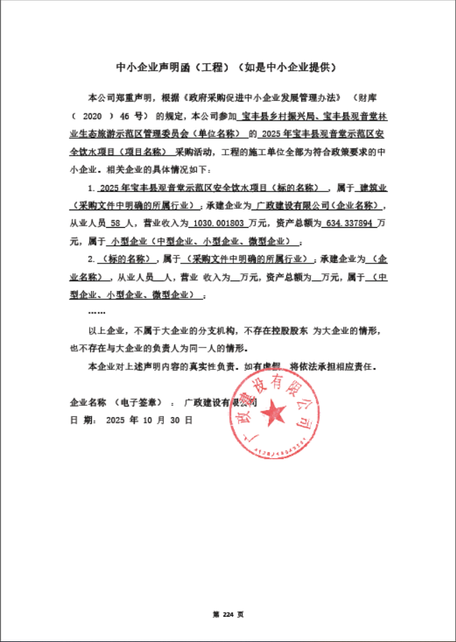 宝丰县乡村振兴局2025年宝丰县观音堂示范区安全饮水项目-成交公告