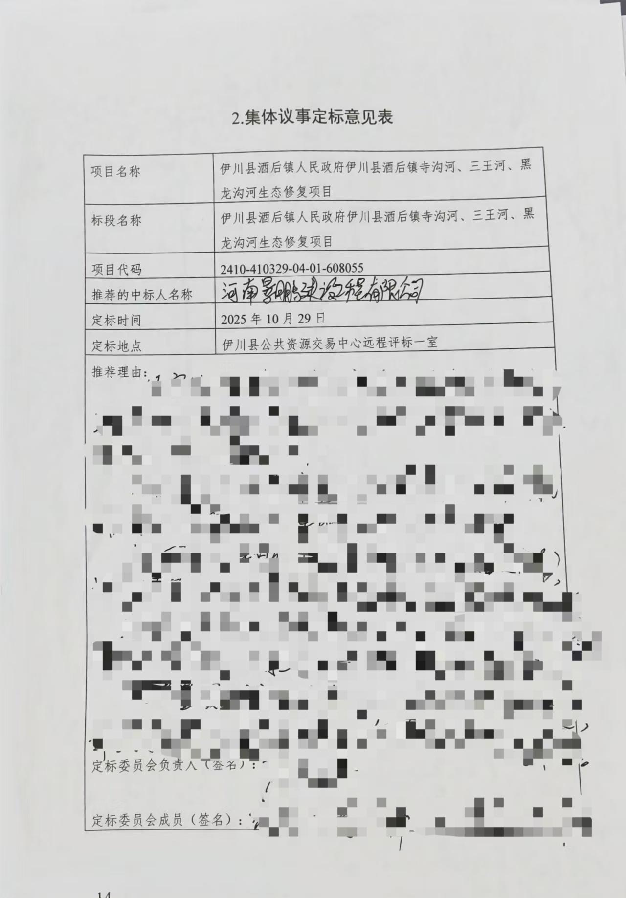 伊川县酒后镇人民政府伊川县酒后镇寺沟河、三王河、黑龙沟河生态修复项目中标结果公示