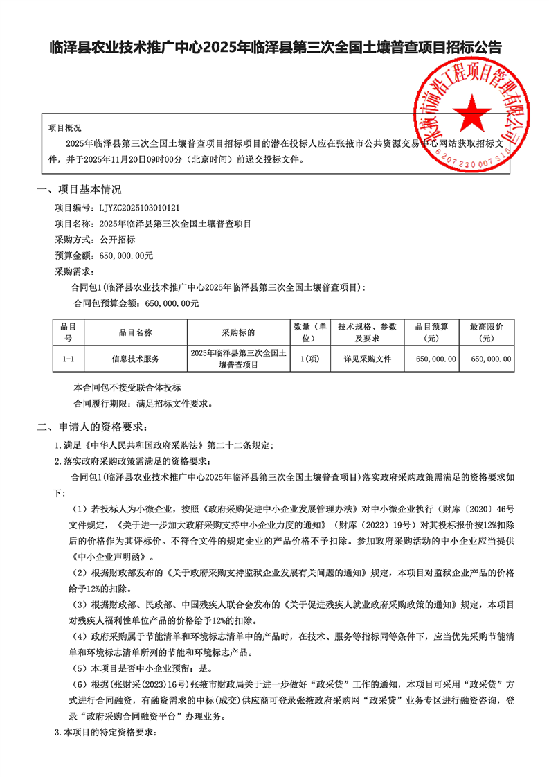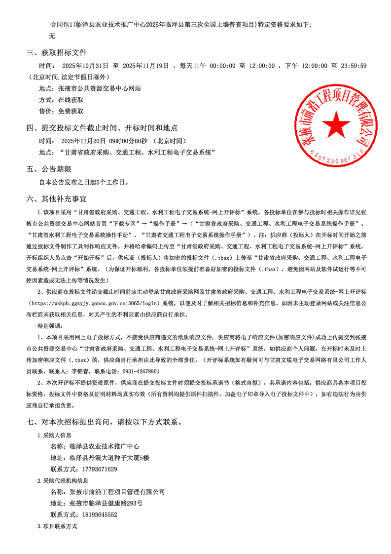 【正常公告】****年临泽县第三次全国土壤普查项目