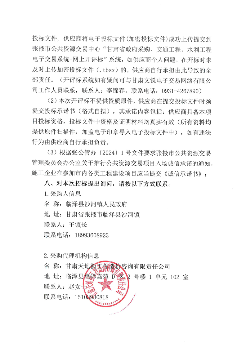 交易平台:张掖市公共资源交易中心临泽县分中心招标/采购项目编号:********************投标登记截止时间:********** **:**:**