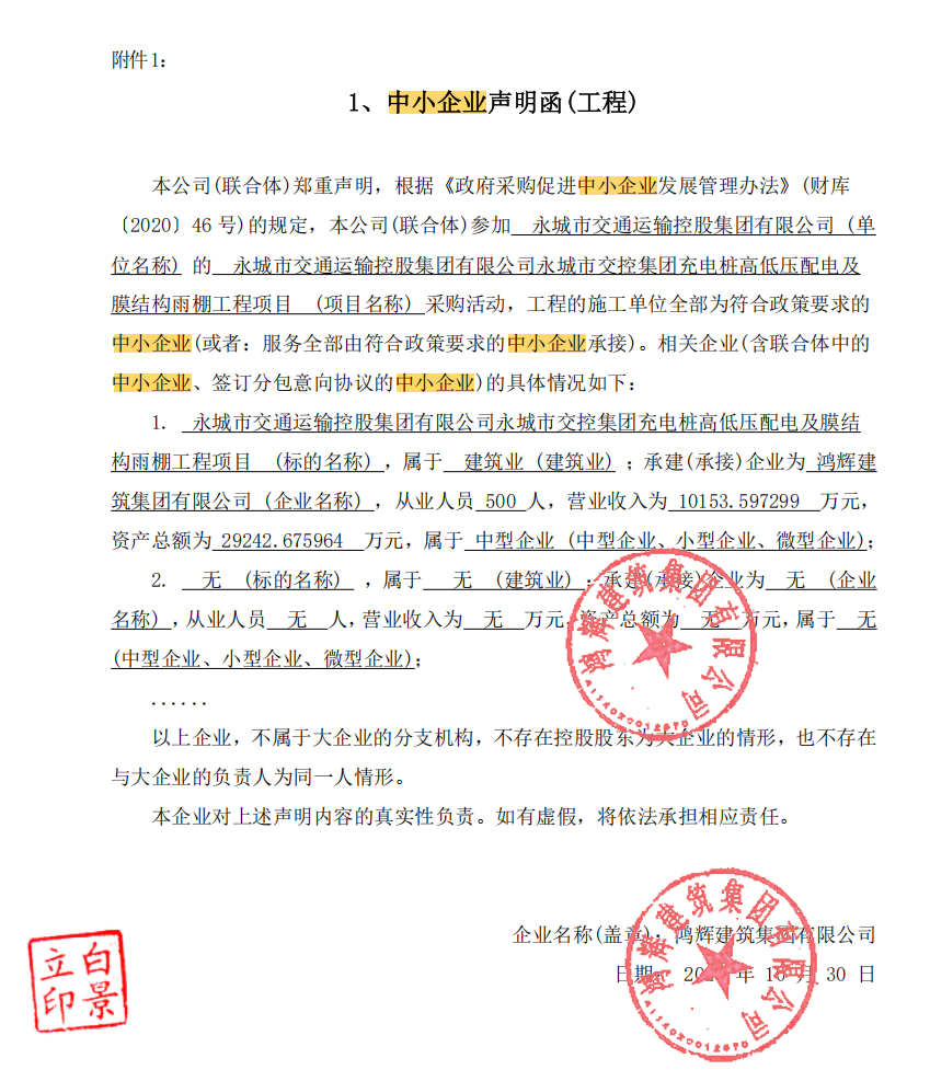 永城市交通运输控股集团有限公司永城市交控集团充电桩高低压配电及膜结构雨棚工程项目*成交公告