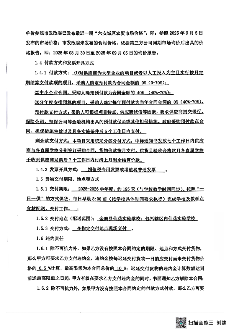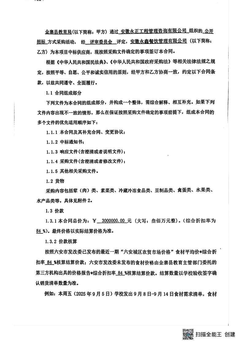 2024-2025学年度学校食堂食材采购合同