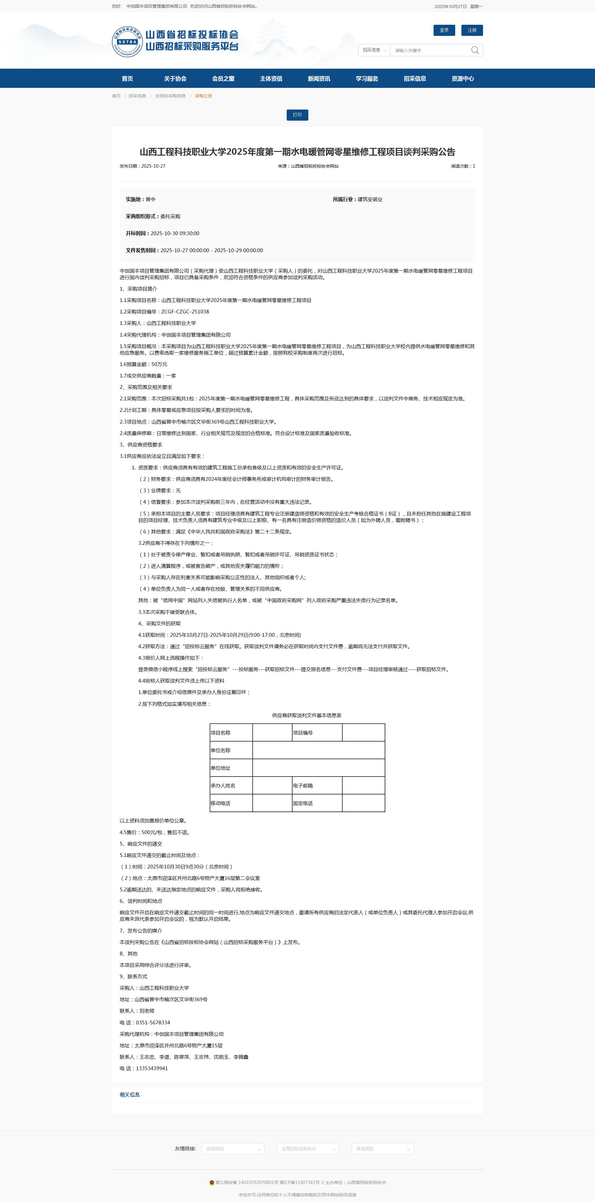 山西工程科技职业大学2025年度第一期水电暖管网零星维修工程项目谈判采购公告