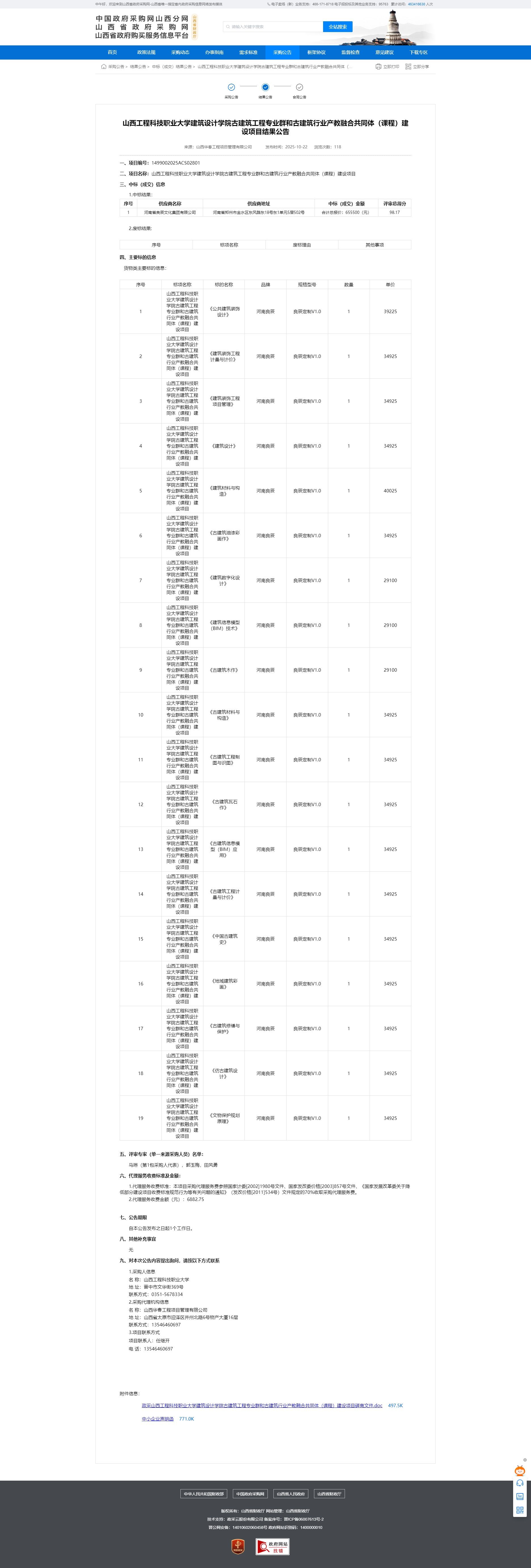 山西/太原   中标结果